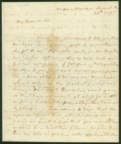 The fact that Charlotte thought Martha would be willing to listen to her complaint indicates a certain level of trust and expectation about the treatment she routinely received. Both George and Martha believed that slaves should not be punished without sufficient cause, and then, only in proportion to the misdeed.