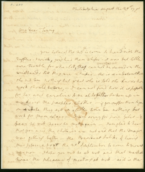 However, neither George nor Martha was willing to free their slaves during their lifetimes. This was an especially delicate issue during Washington’s presidency. The national capital moved from New York to Philadelphia in late 1790. Pennsylvania had passed a law stating that slaves would become free after residing for six months in the state.