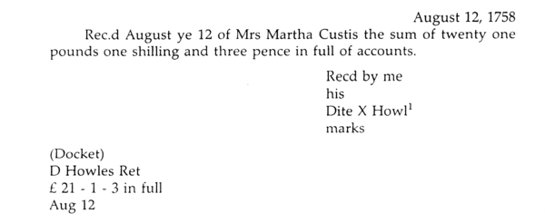 - Receipt, from Epaphroditus Howle, August 12, 1758