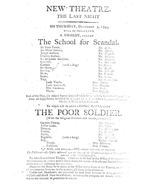 "Playbill, School for Scandal," in Martha Washington, Item #314, https://marthawashington.us/items/show/314 (accessed April 6, 2021).