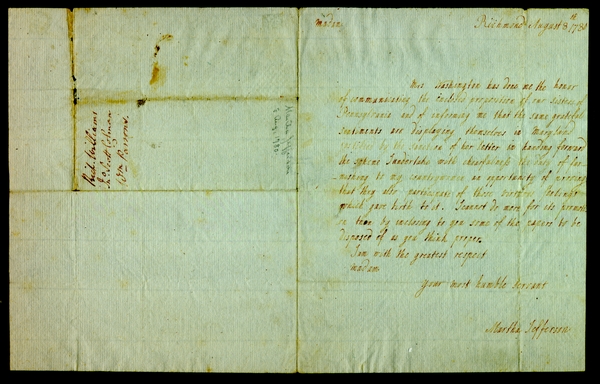 - Letter, Martha Jefferson to Frances Tucker, August 8, 1780